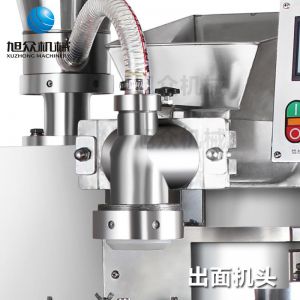 ◆ 本機采用雙絞龍送面、變頻無級調速,包子大小、出面出餡均可任意調節,出面均勻、出面暢通、不傷面筋、不斷面筋,出餡系統優點:餡管不會掉餡,不會出現空包子,出餡速度快,壓力小,均勻,適合各種不同的餡料。解決了普通包子機菜餡走不穩的問題。