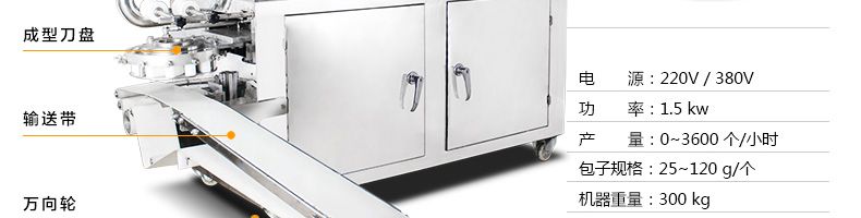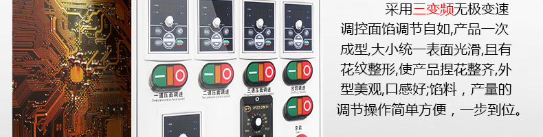 ?三變頻無極變速調控,生產速度、制品大小、內餡含量及生產產量皆可隨意調控;