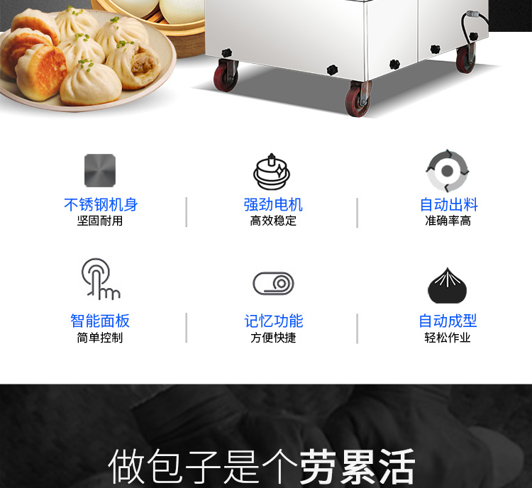 ◆本全自動(dòng)包子機(jī)適用于賓館、飯店、學(xué)校、機(jī)關(guān)、企業(yè)食堂,饅頭、包子加工廠,早餐工程店及速凍食品廠;