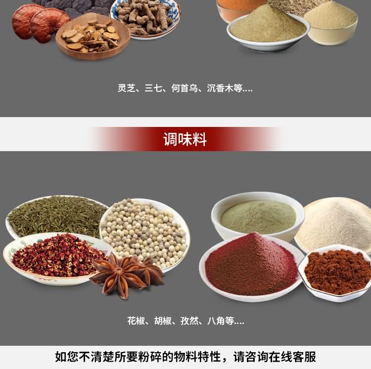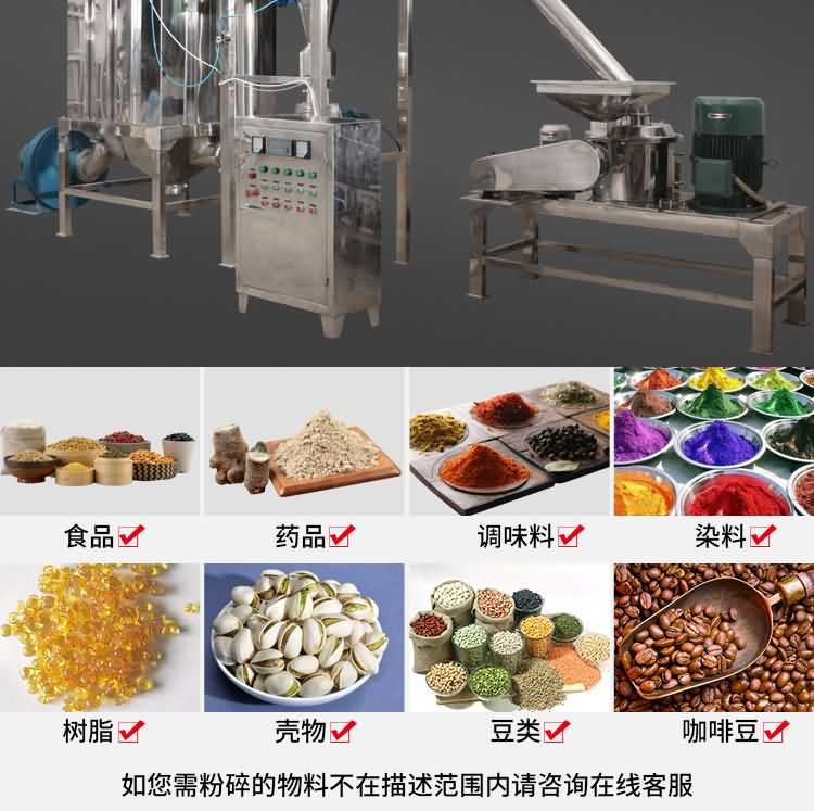 含油量特別高的物料如芝麻、核桃、花生、杏仁、瓜子仁等則無法單獨粉碎。如需粉碎含油量特別高的物料,需要將其與其它不含油或者含油量低的物料混合在一起,含油量高的物料比例盡量低于25%。如果有大顆粒的高含油量物料,用超微粉碎機組粉碎前,需用破碎機或者不銹鋼粗碎機進行破碎(粗碎),再用超微粉碎機組進行超微粉碎。