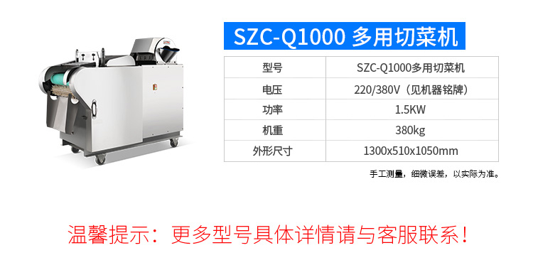 2、切菜規(guī)格可根據不同需要調節(jié)尺寸,方便快捷。隨機共配送三套刀具。