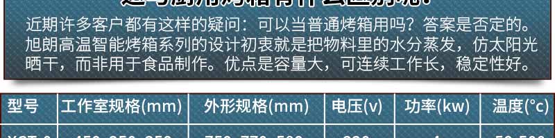 XCT型是帶鼓風(fēng)和恒溫的高溫干燥箱,本產(chǎn)品廣泛用于農(nóng)業(yè)生產(chǎn)、科學(xué)研究、醫(yī)療衛(wèi)生等單位化驗室對試品的烘干、熱處理和加溫,但不適用于揮發(fā)性、易燃易爆等物品,以免引起爆炸。