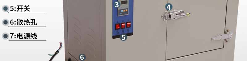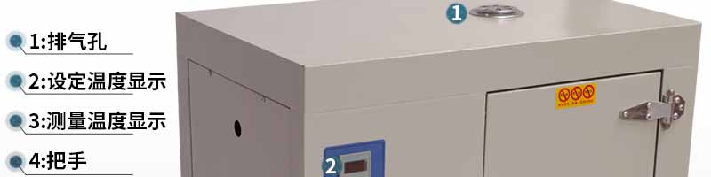 本品工作室下部裝有發(fā)熱絲,左側(cè)裝有鼓風(fēng)裝置,溫度控制儀控制溫度恒定及高低,工作時空氣由箱底進氣孔流進,經(jīng)發(fā)熱絲加熱再經(jīng)鼓風(fēng)裝置流入工作室,再由箱頂排氣孔排出。本品工作室與外殼之間有玻璃纖維做保溫材料,外殼用鋼板制成。