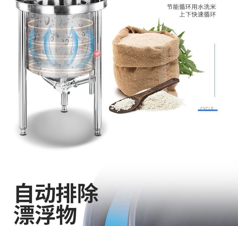 適用于大米、小麥、玉米、豆類等顆粒糧食淘洗。