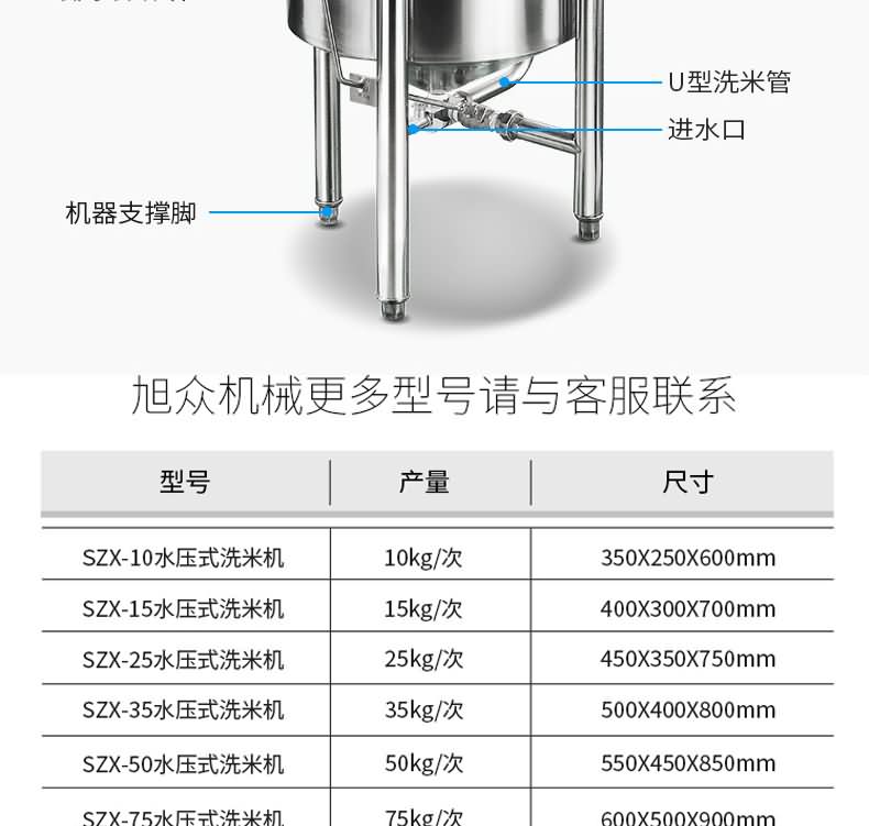 SZX水壓式洗米機系列,適用于大米、小麥、玉米、豆類等顆粒糧食淘洗,在大米深度加工中,洗米是第一道工序,在傳統的加工中, 洗米是手工勞動,不僅勞動強度大,而且效果差。