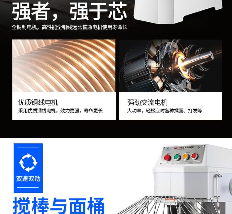 ◆ 攪拌桿雙速可選,和面桶正反轉可選