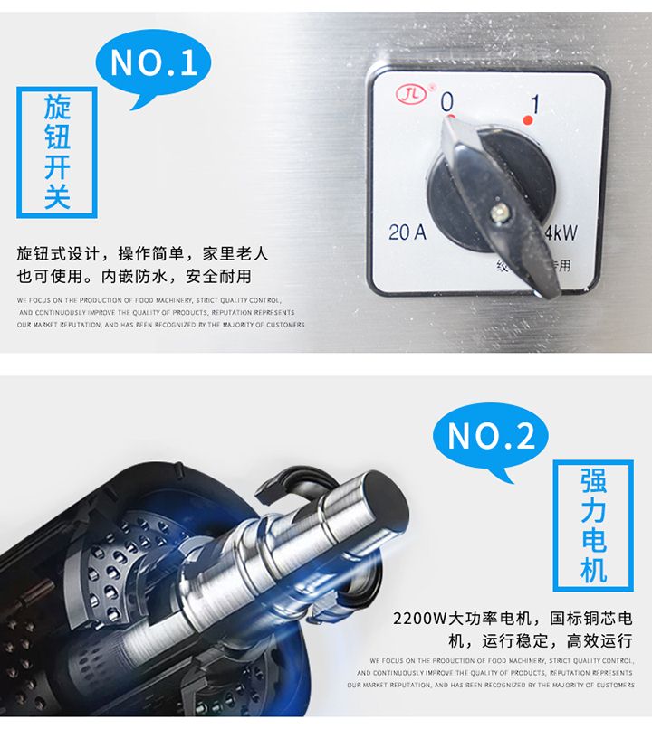 XZL-22A絞肉機吸取同行之優點,改進新型絞肉切肉機械,它能切豬肉、羊肉、牛肉、魚及其它各種肉類、所切肉片厚度適中切片效率高,是餐廳、賓館、酒樓、單位食堂等絞肉切肉的理想機械,該機外形獨特,操作方便,維修簡單,工作效率高,在同行業中處領先地位,與食物接觸部分均采用不銹鋼制造符合食品衛生標準。