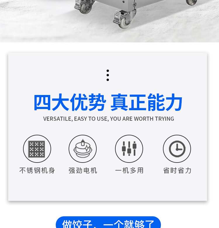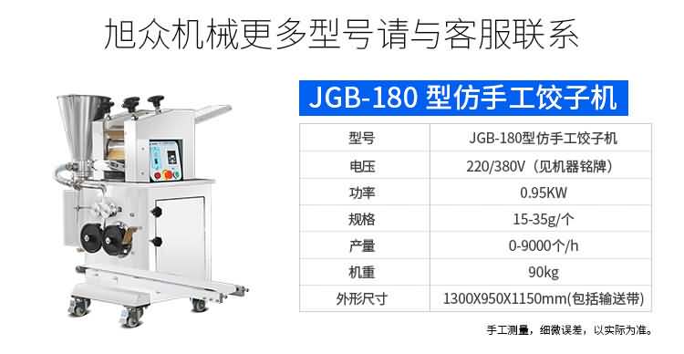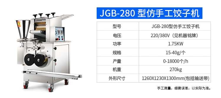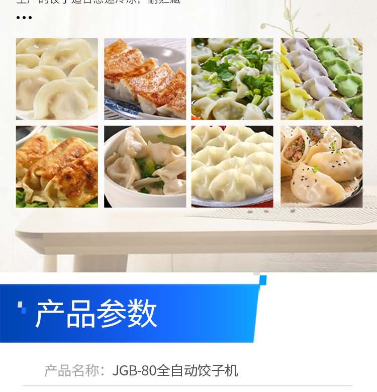 JGB-80小型餃子機,本機是一款可生產(chǎn)各種肉餡、肉菜混合餡、全菜餡及其他種餡餃子的設備。包制出來的餃子可蒸、煮、炸、煎等多種調理。適用于賓館、飯店、餐廳、團體食堂加工,幼兒園、速凍餃子生產(chǎn)。