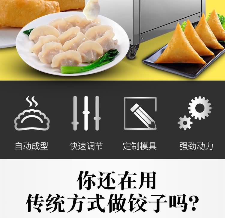 備注: | 更換機(jī)頭可做春卷、餛飩、火鍋水餃、珍珠水餃、咖喱餃子、花邊餃子、鍋貼餃子 |