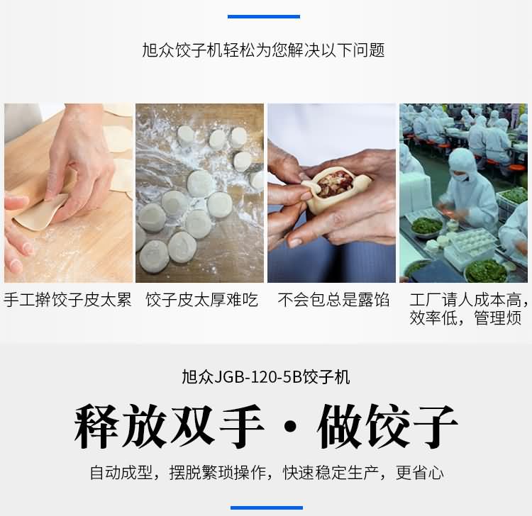 JGB系列餃子自動(dòng)成型機(jī),均適用于賓館、飯店、餐廳、團(tuán)體食堂加工、幼兒園、速凍餃子生產(chǎn)。