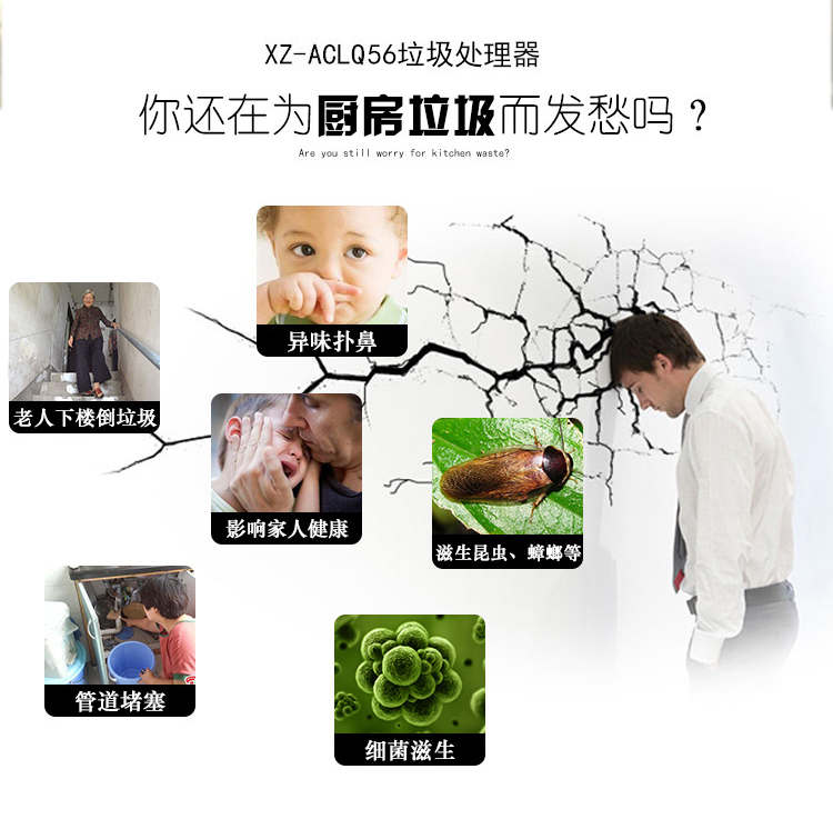 ACLQ56-廚房垃圾處理器,該機器是靠內部結構、零件組合達到處理垃圾的效果,通過碾、壓、擠、磨等系統的處理,在十幾秒內安全將食物垃圾處理成小于3毫米的顆粒,隨著水流排入下水道,使用十分安全。