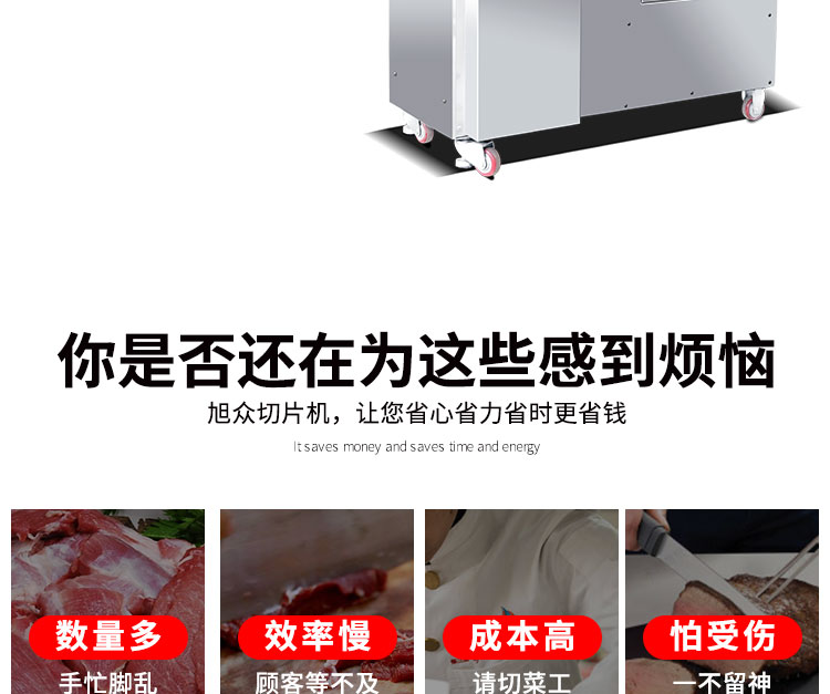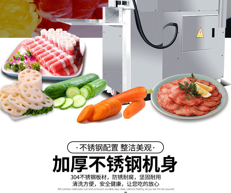5.旭眾牛羊肉切片機憑借其外觀,高效率加工能力,簡單的操作,及超低的故障率,備受廣大客戶的好評,成型美觀
