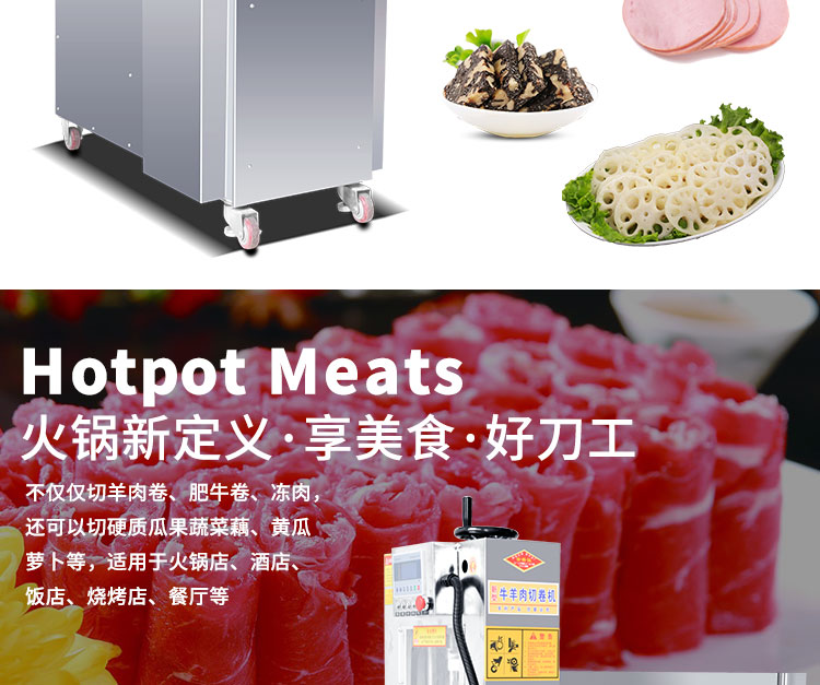 1.不用解凍,-18度的肉卷上機即可切片,肉片不碎且成型美觀