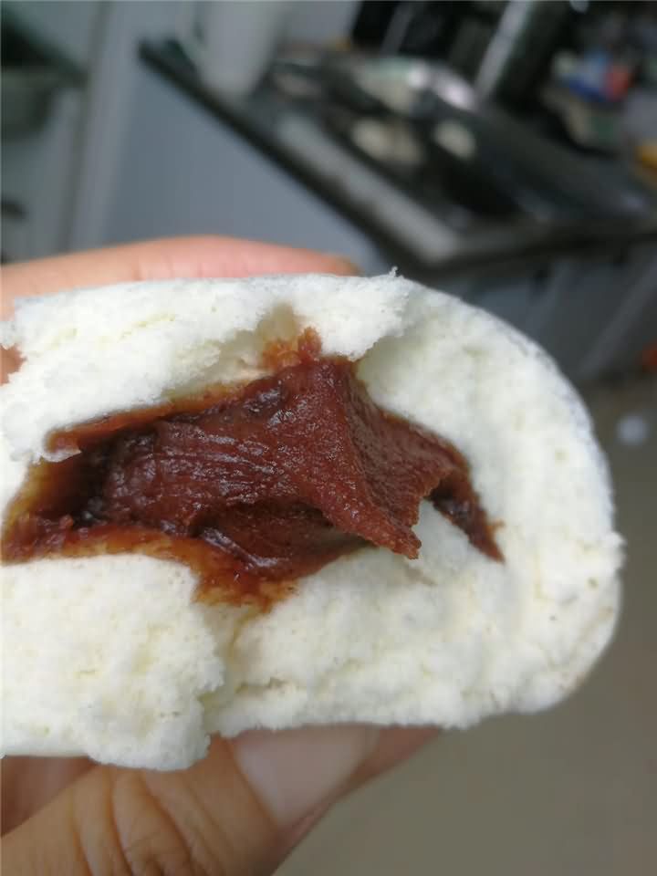 今日的早餐又有著落了!早上客戶在家拌好的豆沙餡來到旭眾機械廠,直接用包子機生產豆沙包,剛剛出爐,這包子口感真的是太好吃了,比包子鋪賣的豆沙包還要好吃,忍不住又多吃了一個,感覺中午都不用吃飯了
