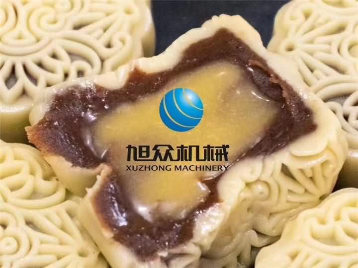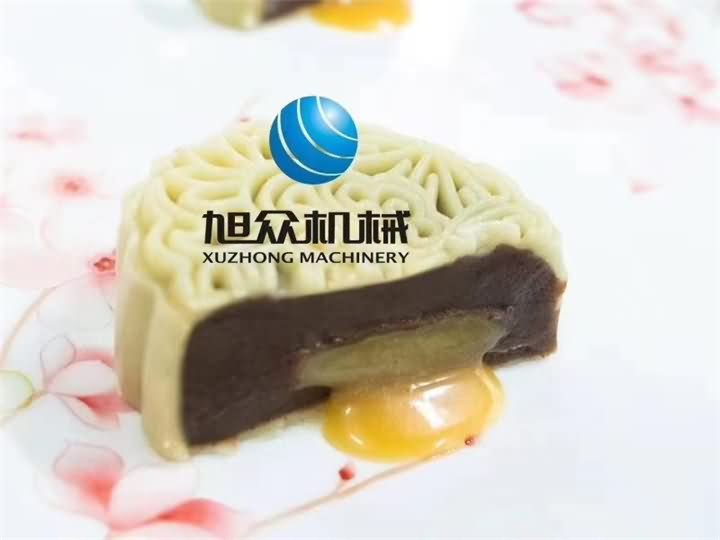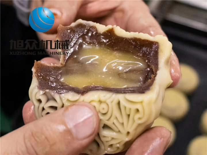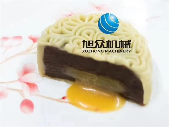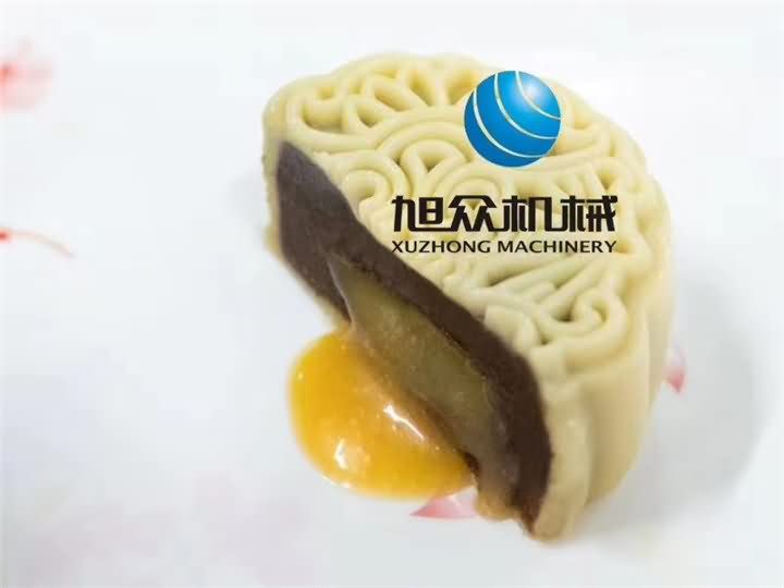 旭眾新款SZ-68S餡中餡自動包餡月餅機流水線生產(chǎn)流心月餅效果: