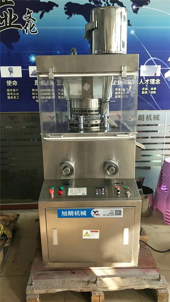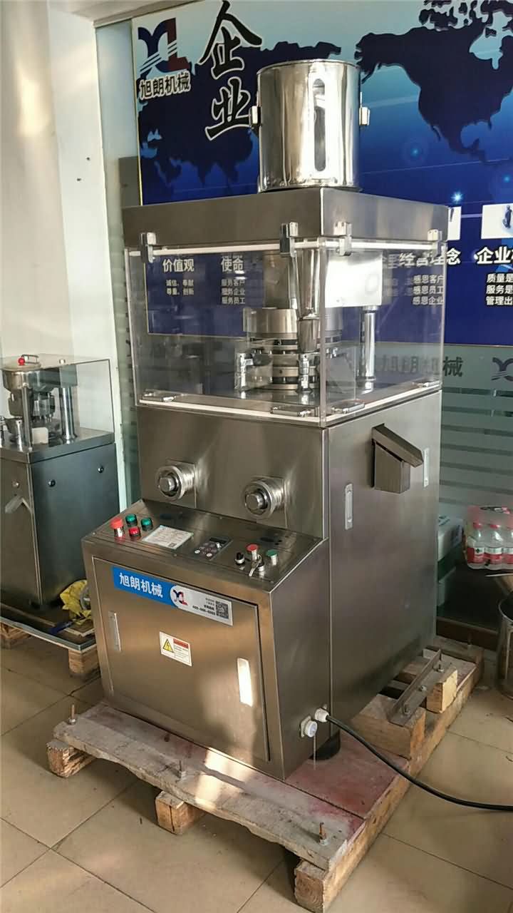 旭眾集團(tuán)旗下旭朗品牌專門生產(chǎn)粉碎機(jī),制藥機(jī),壓片機(jī)等設(shè)備,目前熱銷款不銹鋼旋轉(zhuǎn)式壓片機(jī)以將各種顆粒狀原料壓制成圓形片劑,適合于小批量生產(chǎn)。其特點(diǎn)是轉(zhuǎn)盤上可裝15-19付沖模,旋轉(zhuǎn)一周即可壓制15-19片。轉(zhuǎn)盤速度、物料的充填深度、壓片厚度均可調(diào)節(jié)。可接受定制各種形狀片劑的模具!