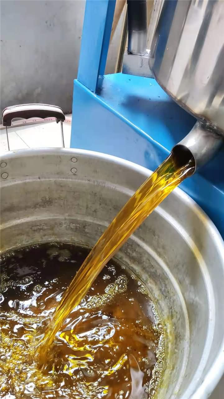 開榨油坊太簡單了,僅需這么幾臺榨油機(jī)設(shè)備就足夠了,炒料機(jī)、上料機(jī)、榨油機(jī)、濾油機(jī)組合在一起可以生產(chǎn)榨油機(jī)生產(chǎn)線,吳總現(xiàn)場操作榨油機(jī)熟榨菜籽油效果 :