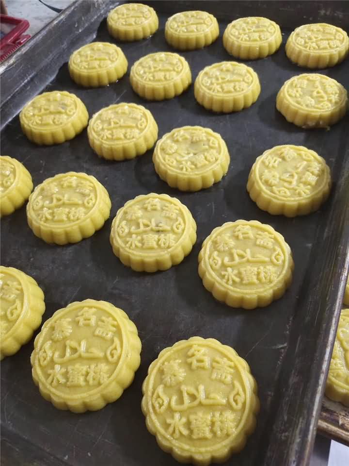恭喜楊老板定購的一套月餅機設(shè)備生產(chǎn)水蜜桃月餅已調(diào)試完畢,?祝楊老板生意興隆,財源廣進!