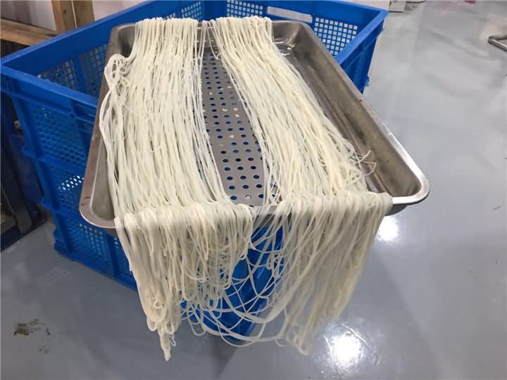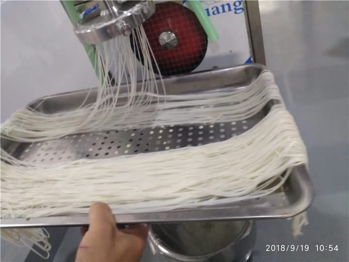 他來了,他來了,他帶著十幾斤的大米來到旭眾機械廠!劉老板開了個小型米粉加工廠,因買了多年的米粉機設(shè)備老化想換新設(shè)備,卻找不到原來的米粉機廠家,只能另尋新的米粉機設(shè)備,于是便找到了旭眾米粉機,在得知米粉機可以提供現(xiàn)場演示服務(wù),在家泡了十幾個小時的大米,瀝水后便帶來到現(xiàn)場,劉老板現(xiàn)在不僅能看到米粉機還能看到合適的粉碎大米的機器,小型米粉機都是將米磨成漿,但因磨漿機因要售出原因不能提供試機,于是便先將大米粉碎成粉,再調(diào)成米漿,在做這些之前可以先將米粉機灌入水,開啟開關(guān)水燒開制100℃也是需要一段時間的,剛好做完這些工序的時候米粉機的溫度也差不多100℃,就能直接將米漿倒入米粉機,稍等片刻便可制出米粉。