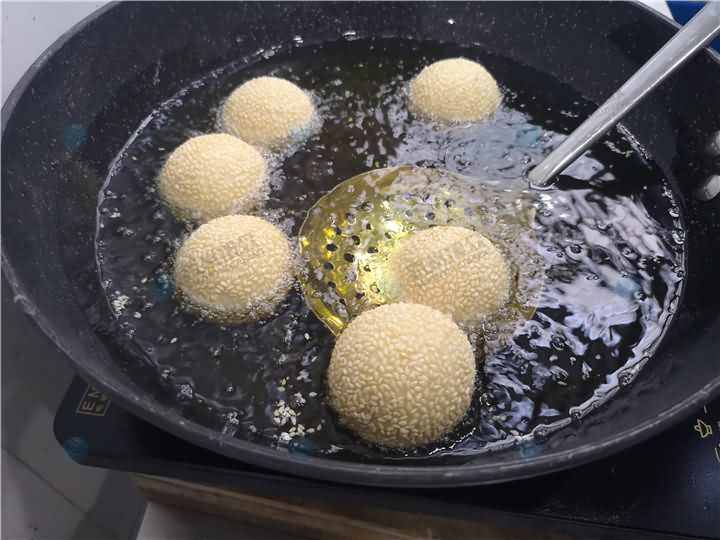 多功能包餡機做麻球咯!就是一開始做出來的團子形狀,如要裹芝麻則需要人工手工裹,或者可以配一臺自動裹粉機器,專門裹粉、裹芝麻、紅米、紫米等等,先來看看包餡機做的麻球效果: