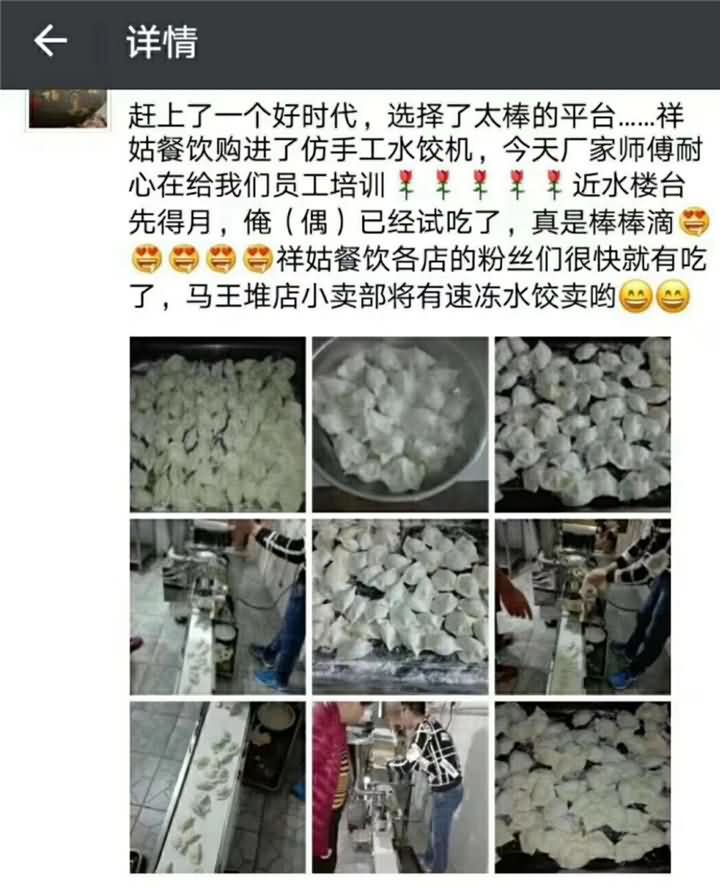香菇餐飲說道趕上了一個好時代,選擇了好的平臺,購進了好的仿手工餃子機!!!水餃生產量上來了,準備做速凍水餃經營模式。感謝客戶對仿手工餃子機的認可,再次祝香菇餐飲日日蒸上,生意紅紅火火!