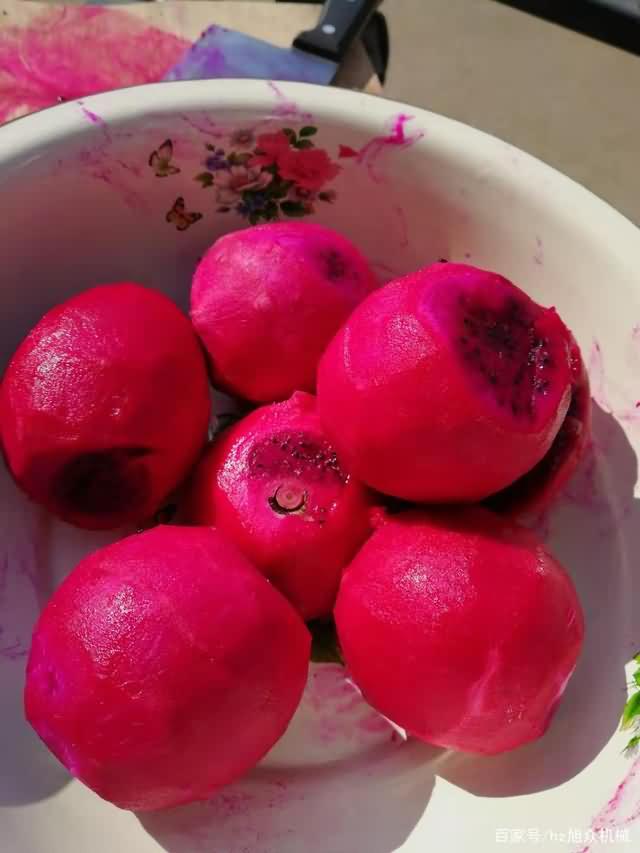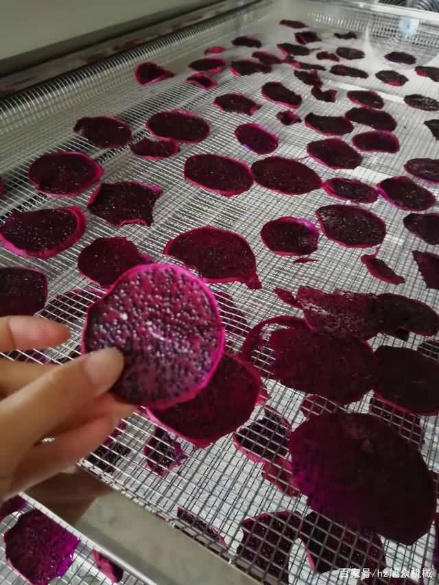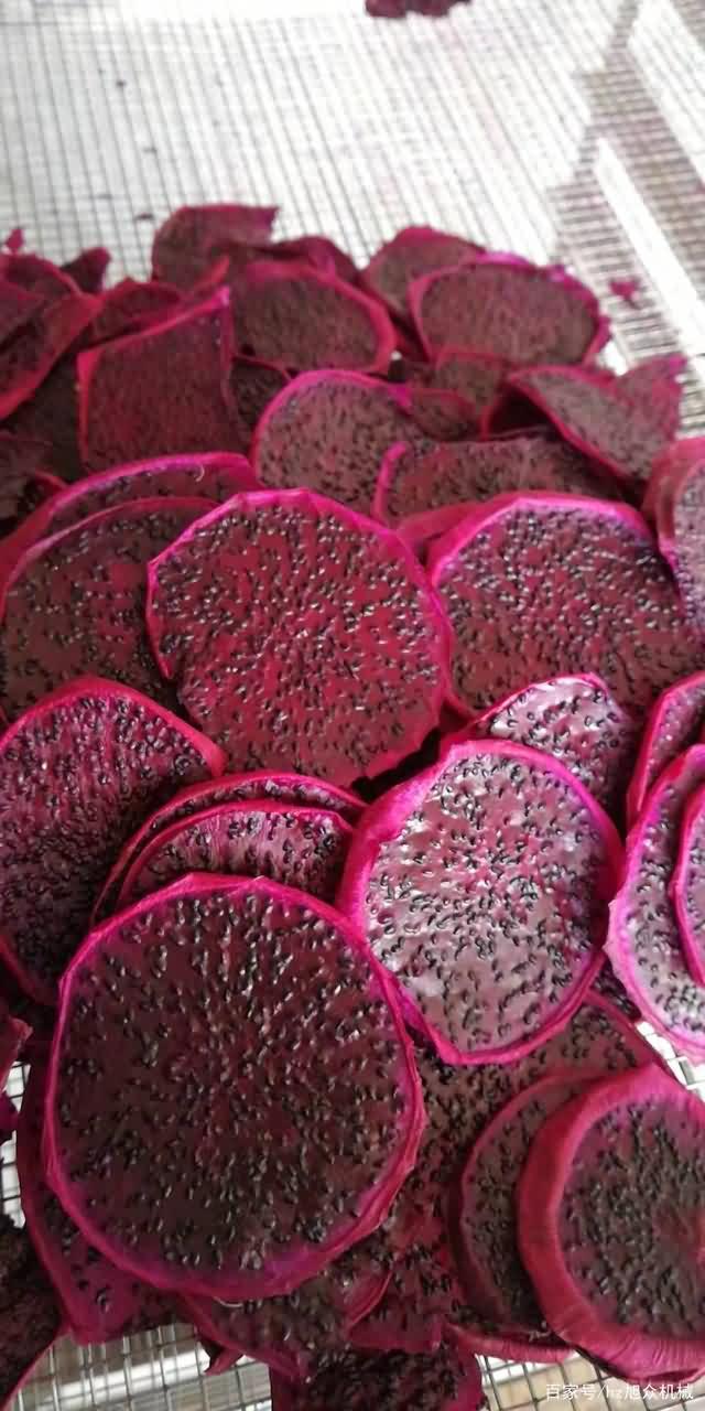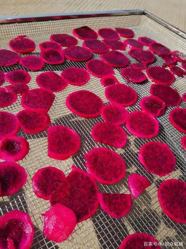 步驟三:火龍果不切片烘干時(shí)間會(huì)很長(zhǎng),所以建議切成片,當(dāng)然具體還是看客戶(hù)選擇,切好的片擺盤(pán)好,不要重疊,不然會(huì)導(dǎo)致被壓的那塊火龍果烘干不均勻。