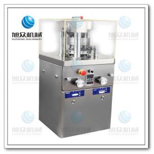 旋轉式壓片機可將粉劑、小顆粒壓制成12毫米以下的圓形或異型片劑,產量為9000-15000片/小時,片劑厚薄、壓力大小、壓片速度均可根據客戶的要求隨意調節。該機外形簡潔、小巧,重量輕,操作簡便,適合制藥、食品、化工、電子等行業使用。配有過載保護裝置,當壓力過載時,能自動停機。本機配有電磁制動電動機和其它安全保護裝置,運行時也能調整與操作。