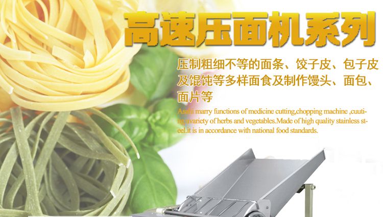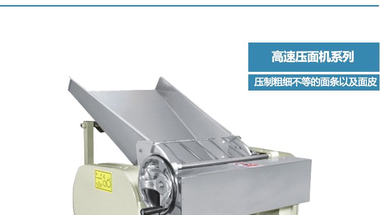 高速壓面機系列,本機壓面、揉面一機兩用,用于制作面條、云吞皮、糕點、面點等食品,生產的產品韌性大、耐煮、不易斷,適合于賓館、飯店、食堂、面包廠及各類面點加工單位或個體商戶使用。