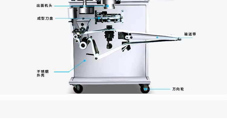 SZ-65型多功能自動(dòng)包餡機(jī)采用臥式輸面、立式輸餡系統(tǒng),運(yùn)行流暢,效率高。可生產(chǎn)豆沙、蓮蓉、五仁餡等較干餡料的包餡類產(chǎn)品,制出的產(chǎn)品餡、皮比例可任意調(diào)整,制品大小統(tǒng)一,外形美觀。