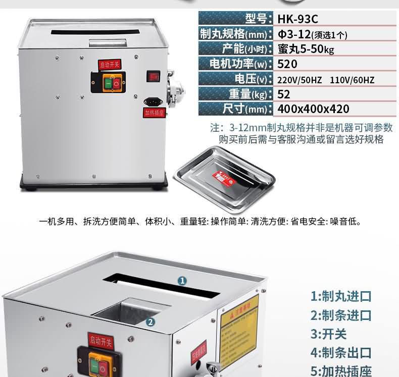 新型高效中藥制丸機是歷經3年研發,HK-93C新型高效中藥制丸機制丸效率比目前普通制丸機要快5-10倍,具有直接出條,更有輔助揉藥團功能,揉出的藥團更有可塑性,徹底解決揉藥難問題,制丸更換不同大小藥丸模具更方便,清洗也更簡單,整機不銹鋼制造,藥丸成型滾軸經進口數控車床加工,制成的藥丸圓潤平滑,每粒藥丸質量平均,可以不用再使用拋光機,操作簡單迅速,保養方便,丸粒大小隨用戶要求定制皆可(3至12毫米)。